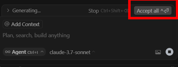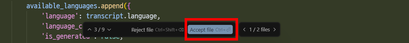 3) 완성된 코드를 "모두 수락(Accept all)" 하겠습니다.