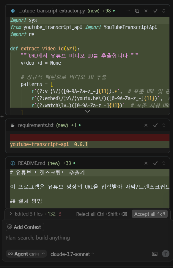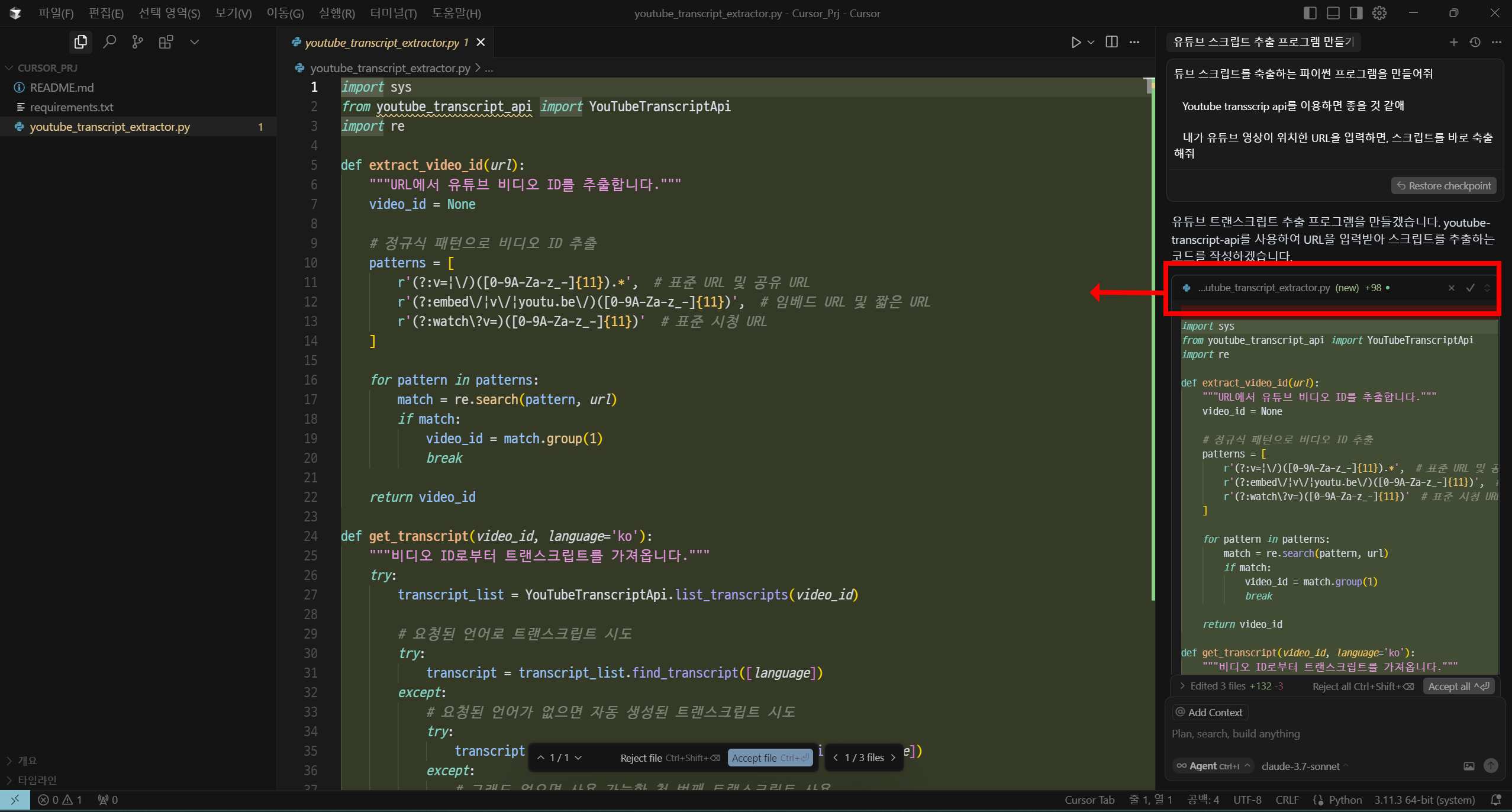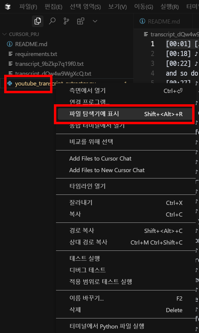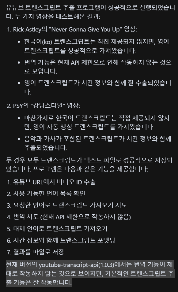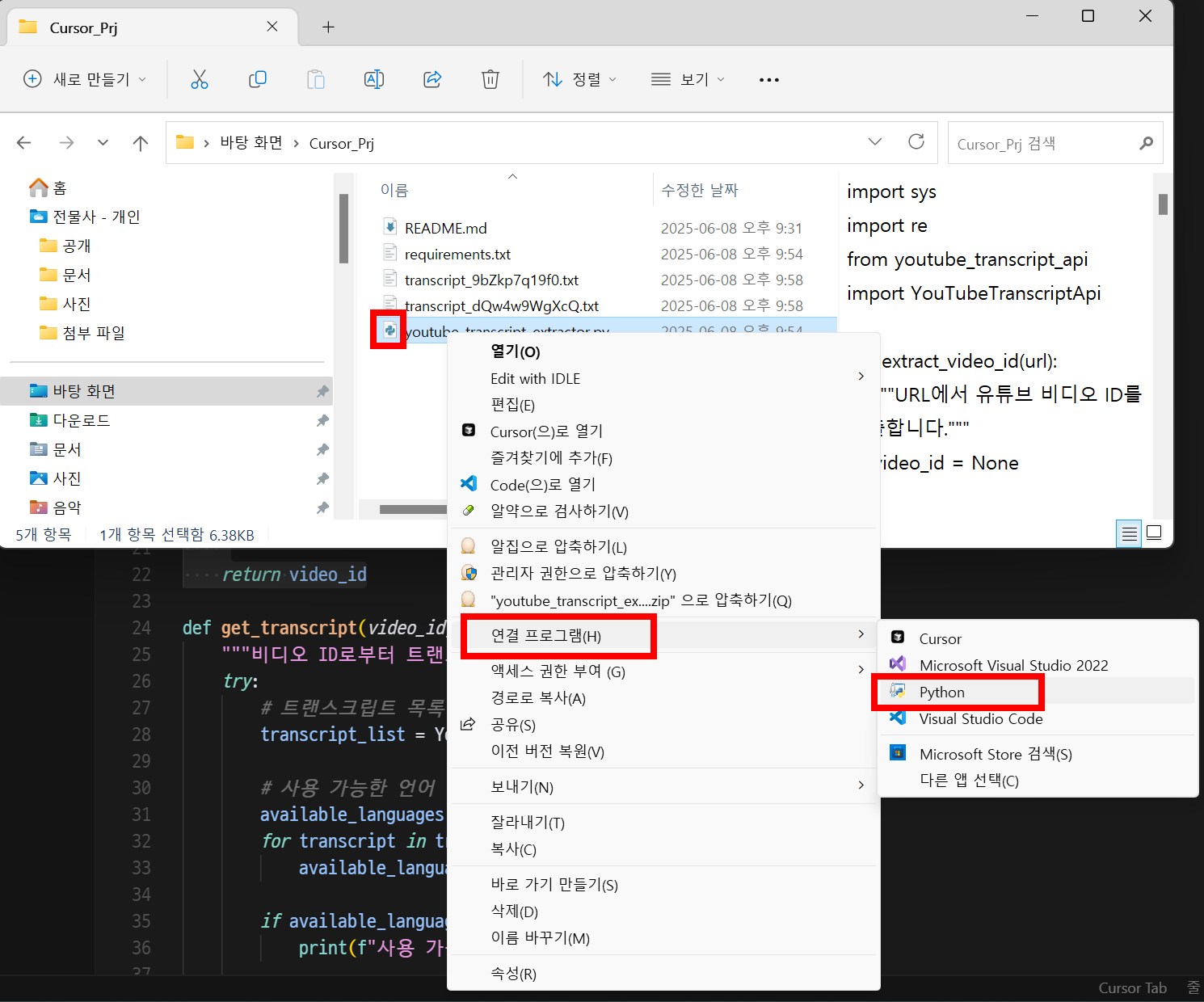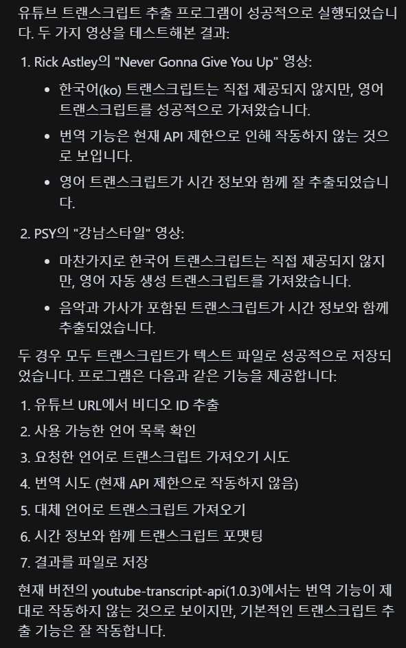 유튜브 영상에서 스크립트를 축출하는 프로그램을 만들어 보겠습니다
