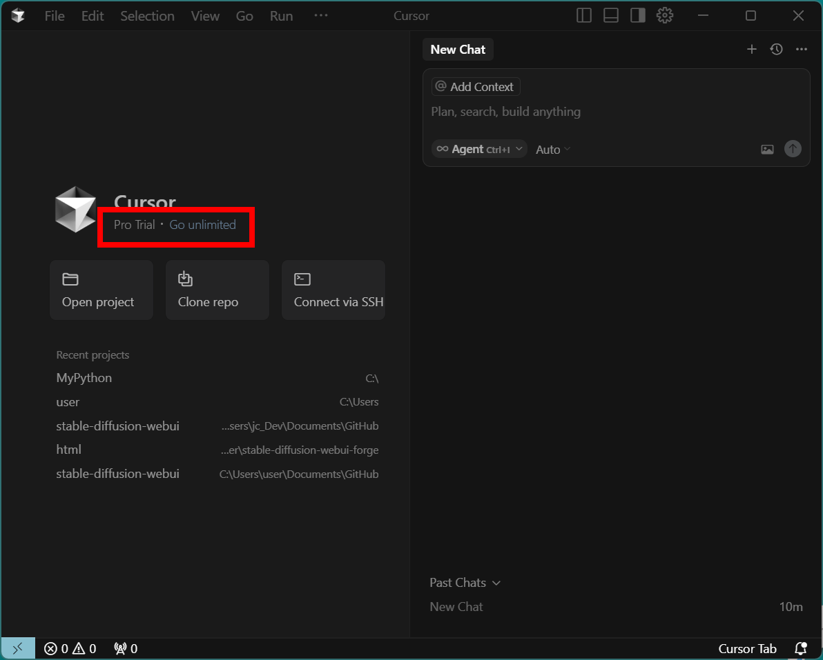"Pro Trial - go unlimited" 라고 표시되어 있으면