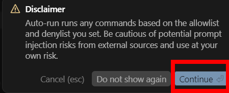 저는 초보이며, 비개발자이기 때문에 "Auto-run(자동 실행)" 을 선택, 계속(Contineu) 파란색 단추를 선택 하겠습니다